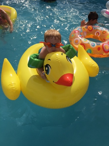 Cloudy and not super nice but they wanted to swim! So swim they did. A couple of their friends came out to swim with them and have supper.